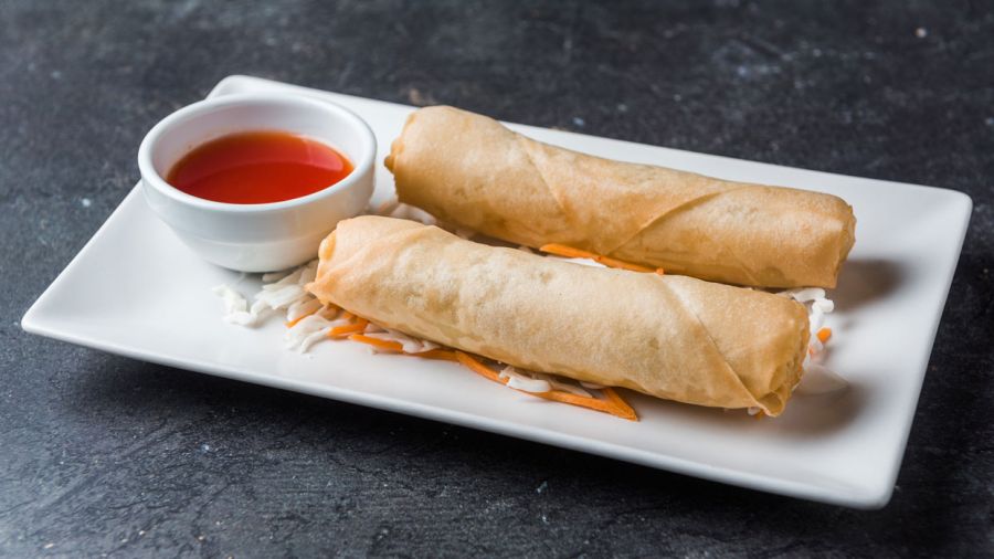 τηγανητή πάπια, συνοδευόμενη από ψιλοκομμένο καρότο, αγγούρι, με κοτόπουλο,λάχανο ,καρότο και sauce της επιλογής σας chili mayo sauce ή teriyaki