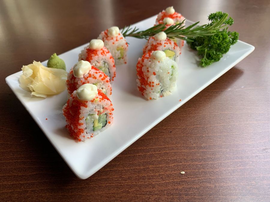 καβούρι, αβοκάντο, αγγούρι, πεπόνι, σουσάμι, τομπίκο
